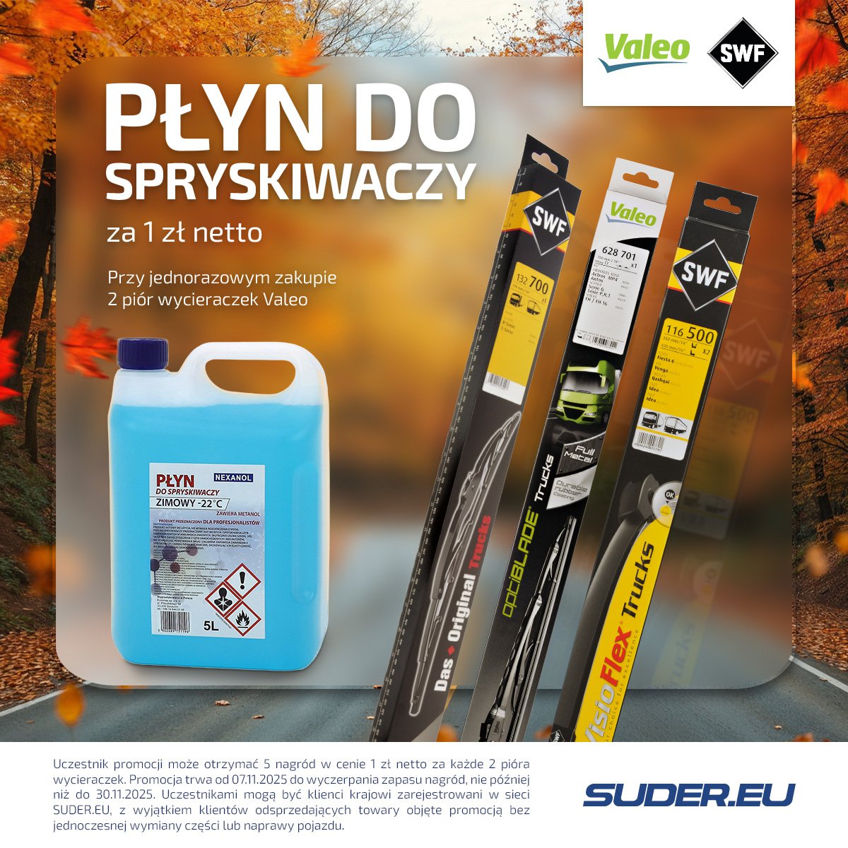 - Za zakup 2 piór wycieraczek marki VALEO klient otrzymuje możliwość zakupu zimowego płynu do spryskiwaczy za złotówkę!